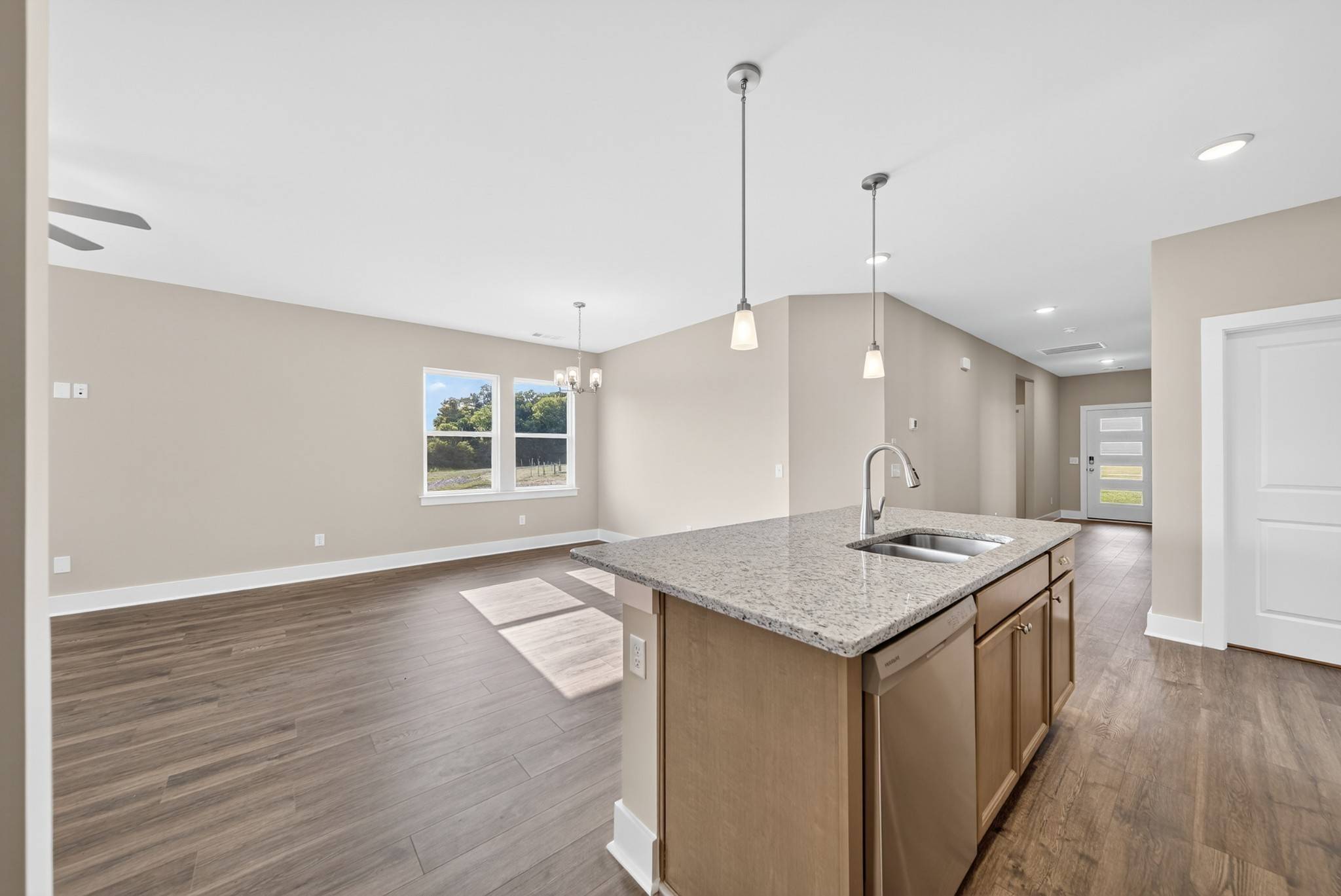 MOVE-IN READY! The Harpeth Plan features 4 bedrooms, 2 baths, and a game room with an open-concept layout perfect for entertaining. Enjoy quartz and granite countertops, LED kitchen lighting with pendants, and 36” cabinets with crown molding. The primary suite offers double vanities, a tiled walk-in shower, and a spacious closet. Includes a covered patio, 2-car garage with insulated doors, and smart home features—all on a beautiful corner lot!